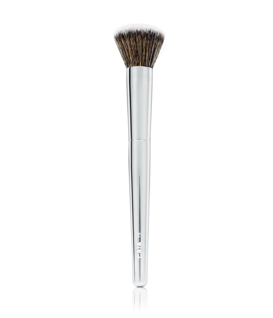 Denna fluffiga borste är perfekt att applicera foundation med för en naturlig look. Buffa varsamt in produkten på din hud för att skapa en jämn och fin bas. Borsten är tillverkad med syntetiska strån och återvunnen aluminium.